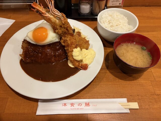 昨日の夕食は、勝負飯ということで、近くの超人気洋食屋へ。